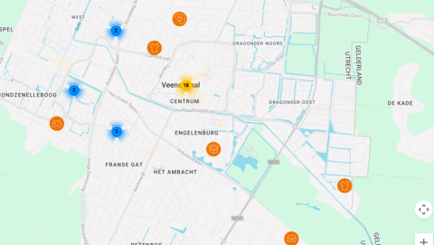 Op de bovenstaande kaart vind je onder andere repair cafés. Dit zijn plekken waar je spullen gratis kunt laten repareren. Veenendaal heeft twee repair cafés: Regenboog repair café(Verwijst naar een externe website) en Repair café Veenendaal(Verwijst naar een externe website).